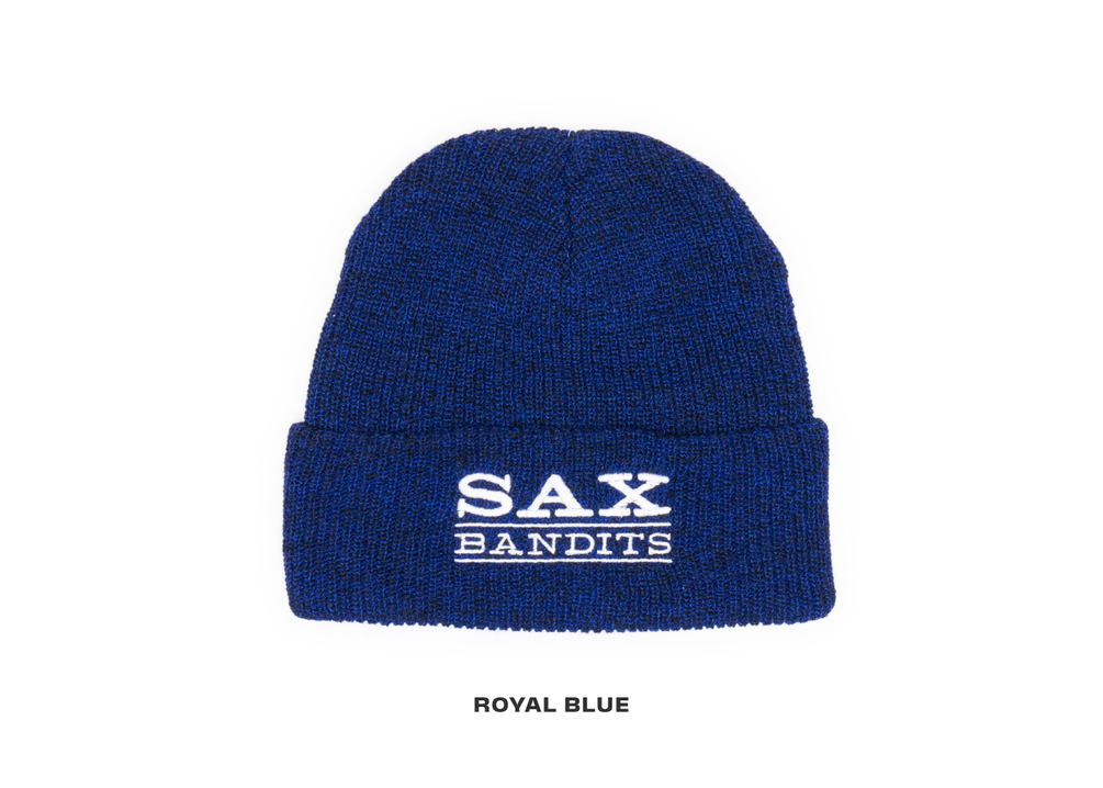 Premium vintage-style beanie with embroidered Sax Bandits logo.